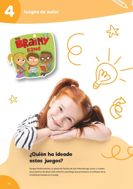4 Juegos de autor ¿Quién ha ideado estos juegos? Sergey Parkhomenko, un padre de familia de San Petersburgo, autor y creador de proyectos de desarrollo infantil y psicólogo que promueve un enfoque de la enseñanza basada en el juego. 76
